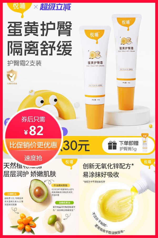 【淘金币抵扣4.18元!叠加88vip+消费券+进店红包到手只要63.35元!!还送护臀膏5g!】悦哺蛋黄油护臀膏专为新生婴儿设计,天然成分温和呵护,预防舒缓红屁屁,宝宝娇嫩肌肤安心之选~