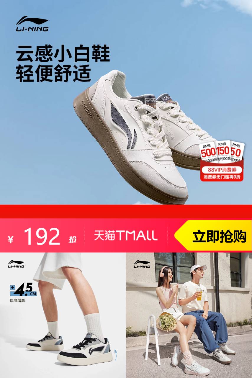 【可叠李宁大额券1000-170,消费9折券,9.4折购物金到109左右;得物156起!】云感小白鞋,轻便舒适。