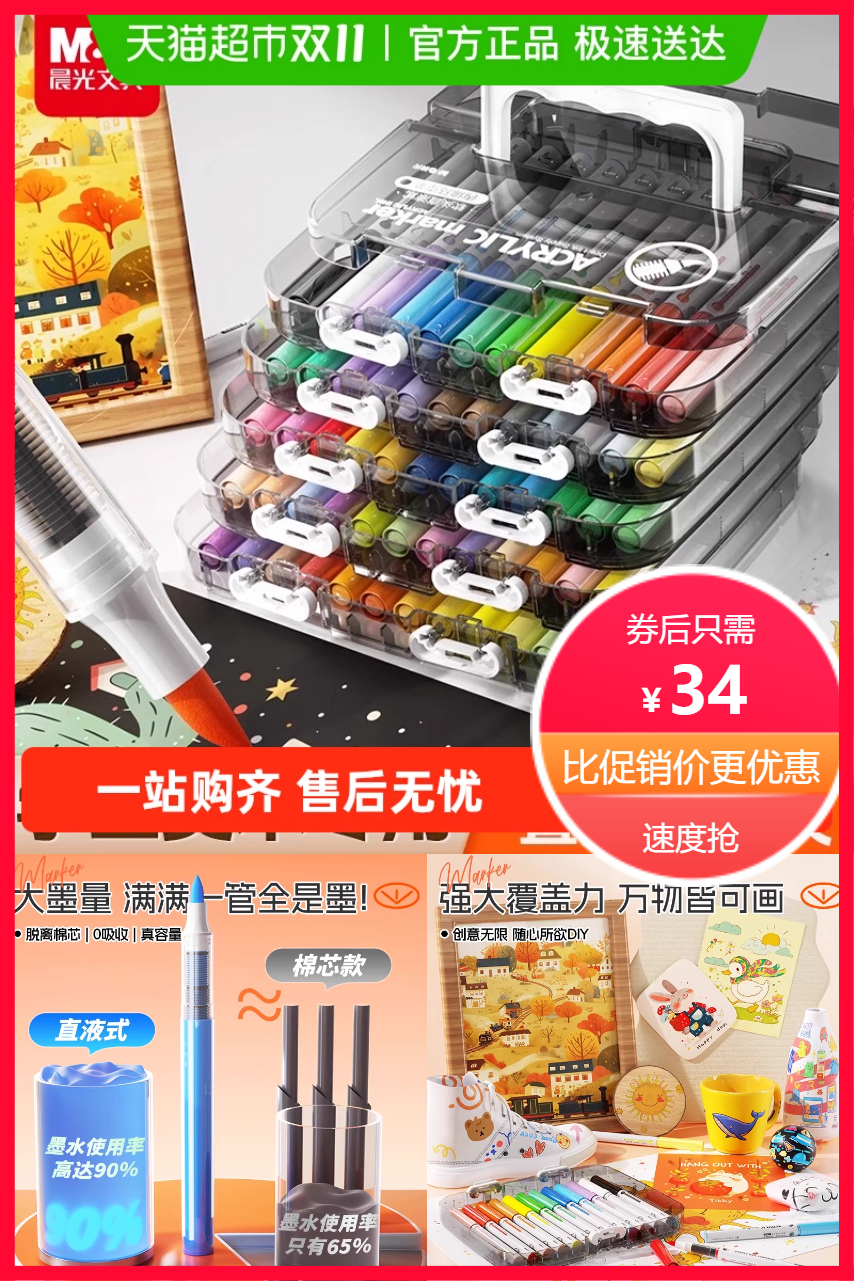晨光丙烯马克笔,软头设计,易于上墨!美术必备,色彩鲜艳持久!适用于多场景创作!学生党福音,学习绘画好帮手!
