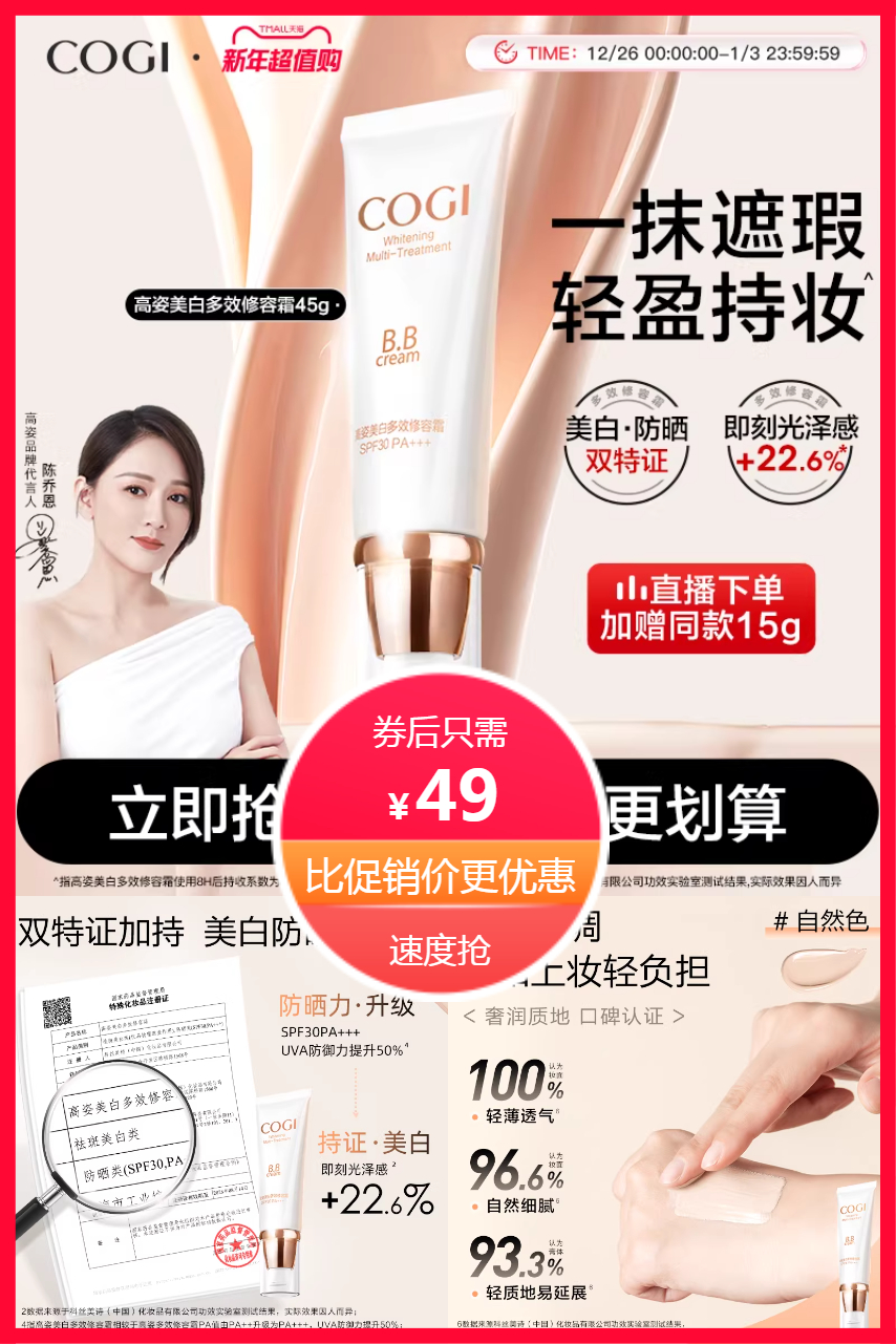 淘金币9.66+限时红包6元,,一抹遮瑕,轻盈持妆!美防晒双特证!自然色调,温和上妆轻负担!【赠运费险】