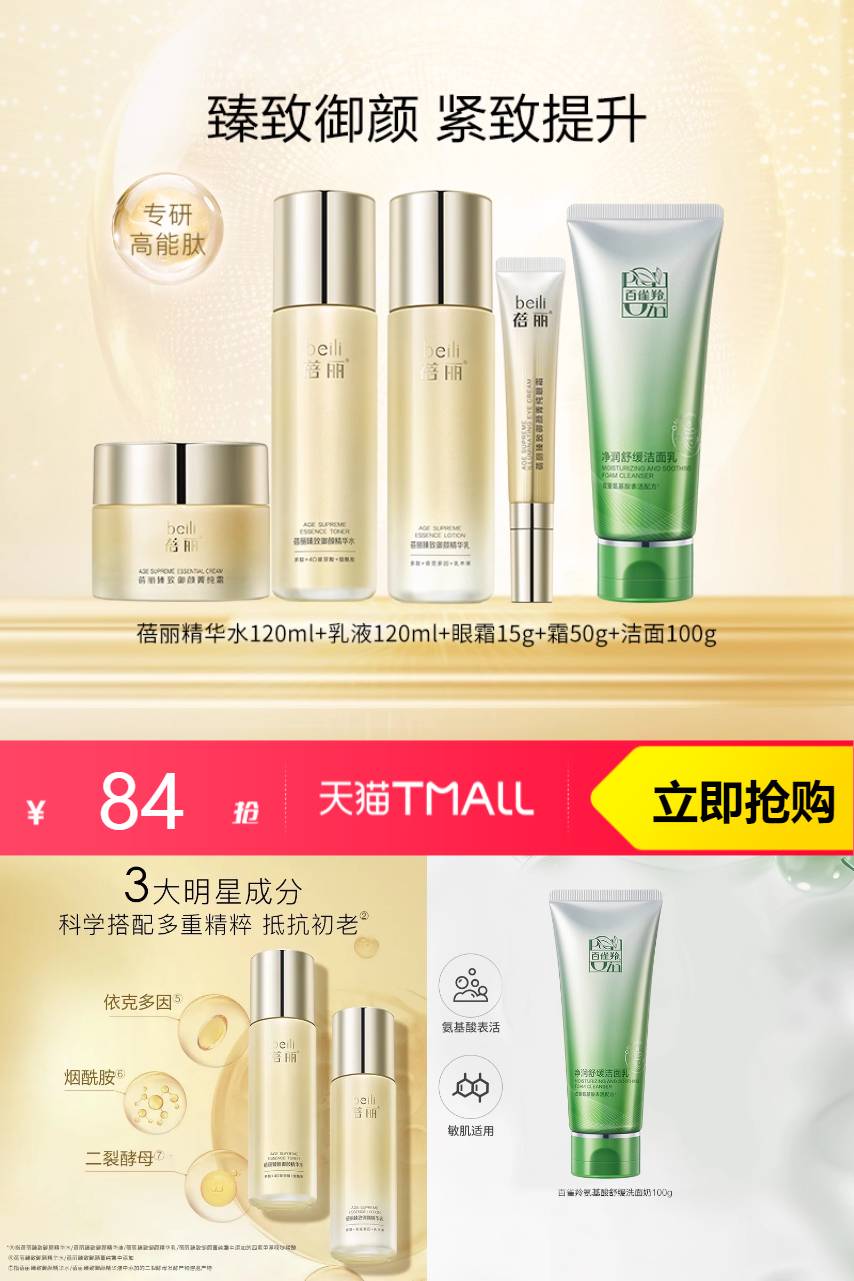 【页面价170-立减31元-优惠券55-淘金币15.3-88vip95折4.2-福袋7元=57.5元】百雀羚蓓丽臻致5件套,臻致御颜,紧致提升~