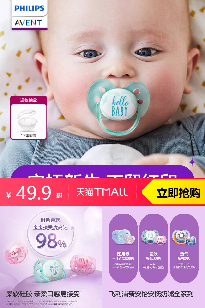 新安怡 飞利浦新安怡安抚奶嘴0到3-6个月一岁上 79.9元减20 商品纠错