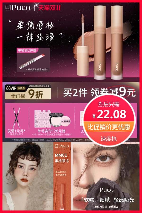 PUCO慕斯唇泥口红唇釉唇 11元减31.92 商品纠错