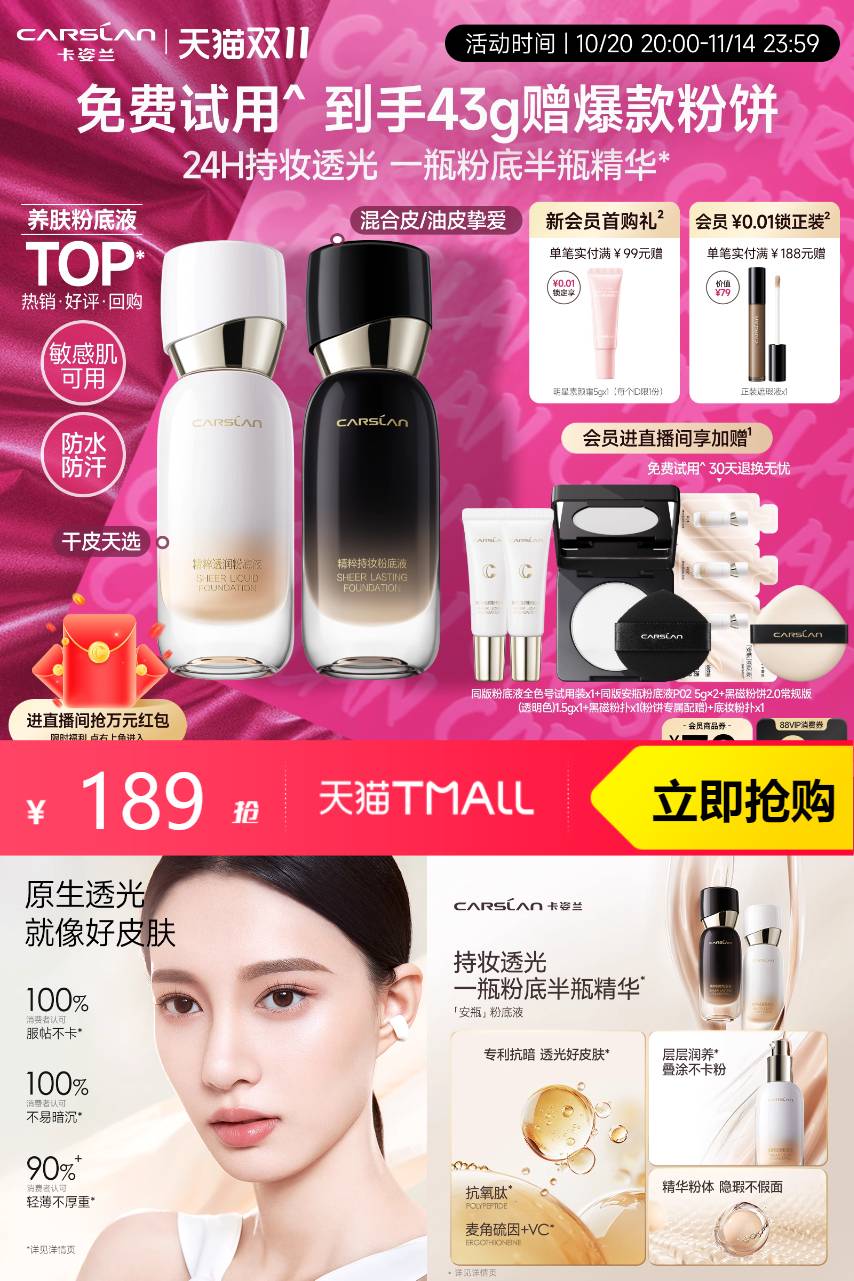 ⭕30g![双11抢购]卡姿兰安瓶粉底液