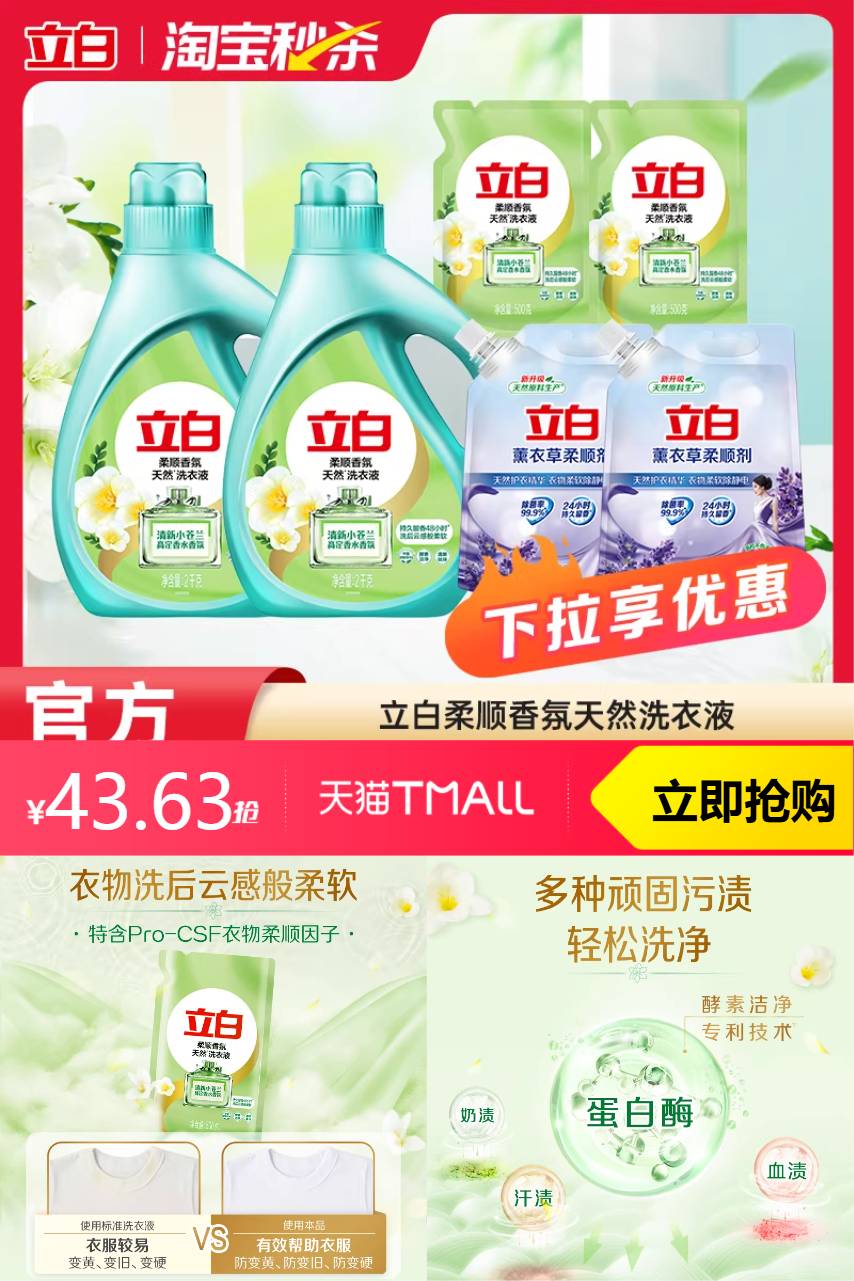 【秒杀价48.63-淘金币6.89-88vip2.09-88折消费券抵扣4.7=到手价34.95】14斤立白小苍兰10斤+薰衣草柔顺剂4斤,清新小苍兰衣物散发雅致淡香~