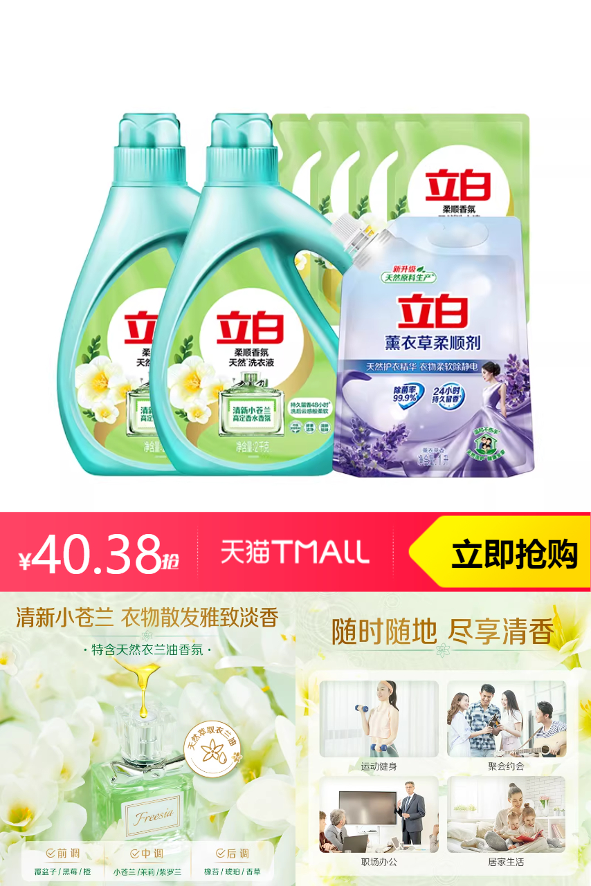 【1、下拉叠加9块钱红包,叠加店铺限时红包2-3块最 低到手37.38】14斤立白小苍兰12斤+薰衣草柔顺剂2斤,清新小苍兰衣物散发雅致淡香~