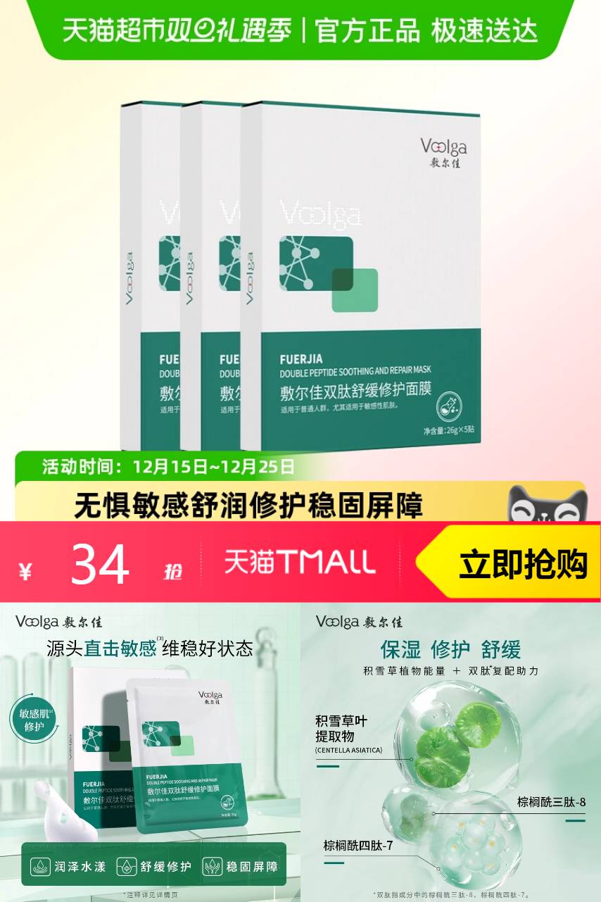 推荐:敷尔佳双肽舒缓修护面膜补水保湿5片