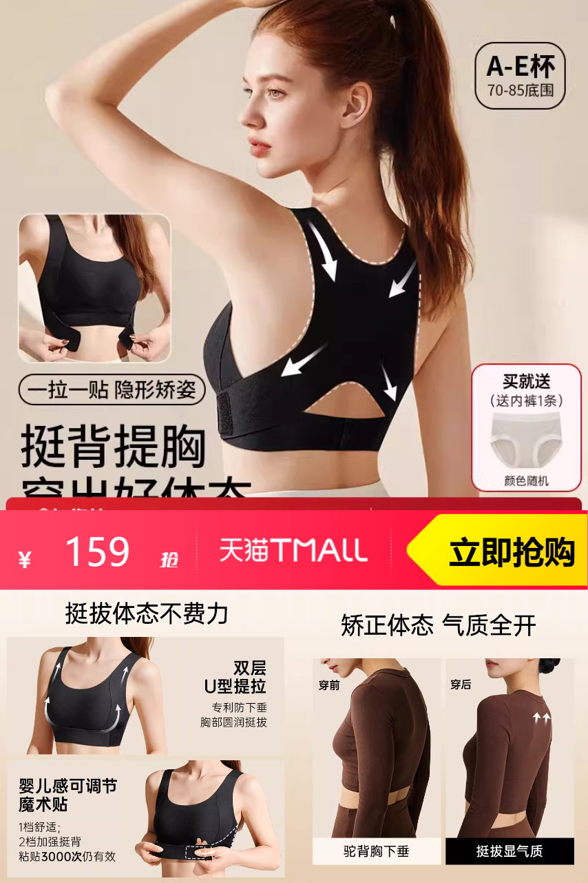 ⭕润微隐形矫姿挺背内衣女前扣式无痕一体美背