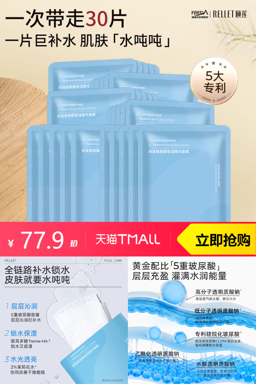 【下拉领金刚券抵7.79元,淘金币抵扣7.66元,凑消费券到手54.7元,折合1.8元/片】颐莲玻尿酸补水精华面膜30片,一片巨补水,肌肤水吨吨。全链路补水锁水,专利植物玻尿酸500倍吸水力,锁水保湿双保障,配比5重玻尿酸,层层充盈,灌满水润能量!快来试试吧!