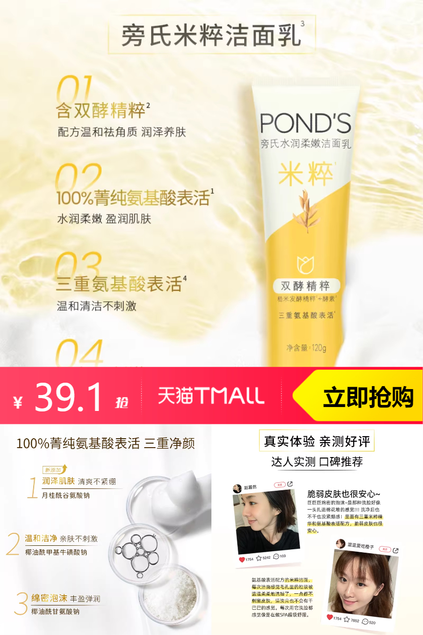 【叠加淘金币0.98元到手仅需38.12元】旁氏米粹洗面奶120g*2支,平价国货!口碑爆款!含双酵精粹,菁纯氨基酸表活三重净颜,三重米粹精华,润泽肌肤。富集小分子精华,,更快渗透,深入滋润!泡沫绵密,温和不刺激,安心洁面,洁肤焕颜,清爽一夏~