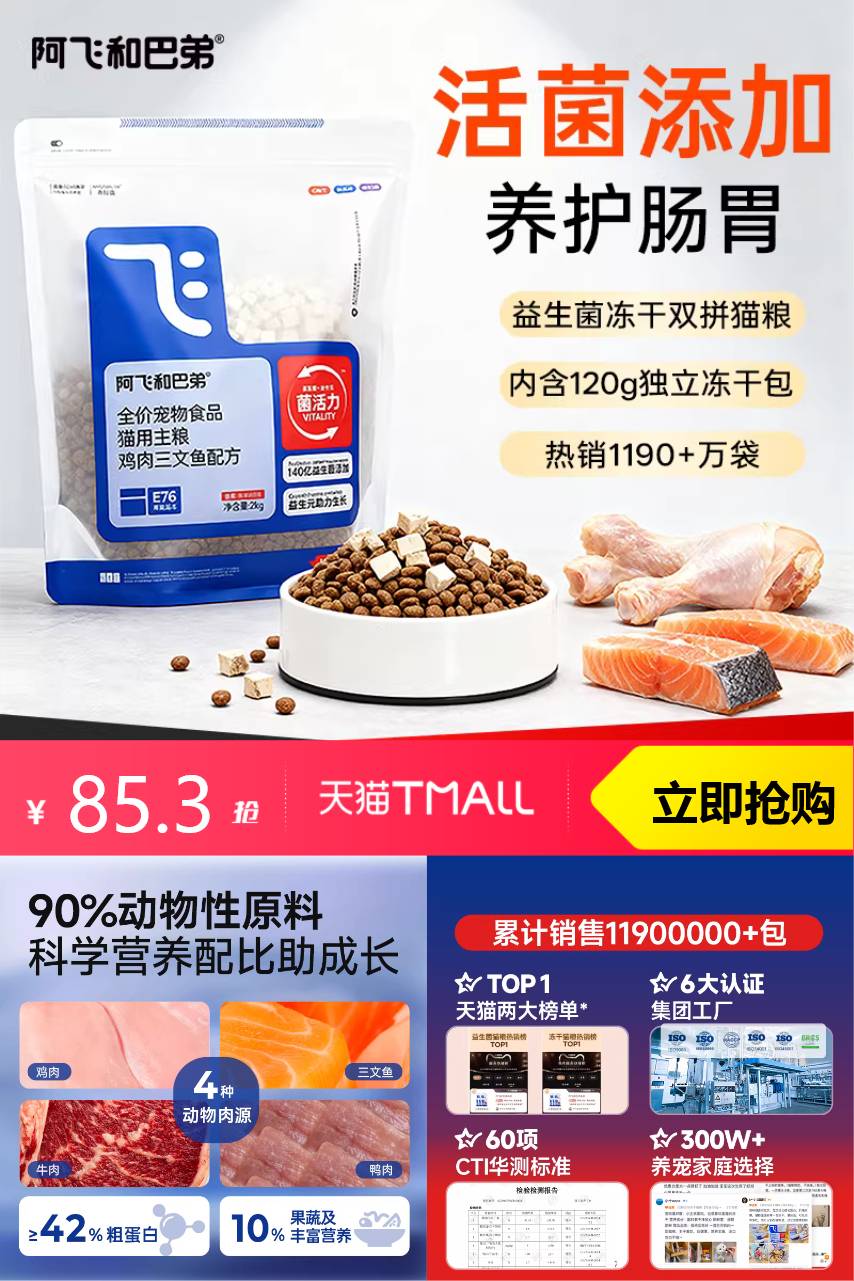 ⭕阿飞和巴弟猫粮E76高鲜肉益生菌冻干