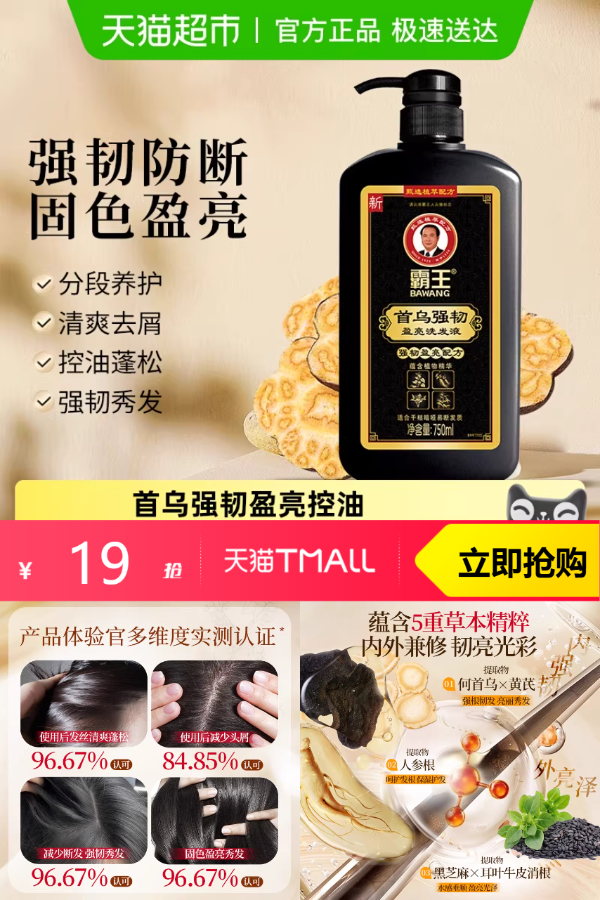 推荐:霸王首乌强韧洗发液洗发水750ml