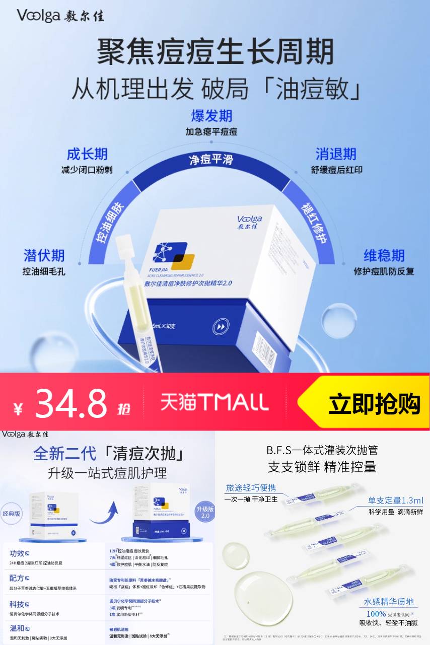 【叠加金币2.79,下拉领取6块超市购物券,88vip后23,消费券后 21】敷尔佳清痘净肤次抛10支精华,肌肤的“隐形医生”!天然成分,轻轻松松祛痘!30支次抛精华,一瓶多用,洁净又清透! 功效卓越,战痘的得力助手!让你的肌肤从此光滑无瑕,触手可及!