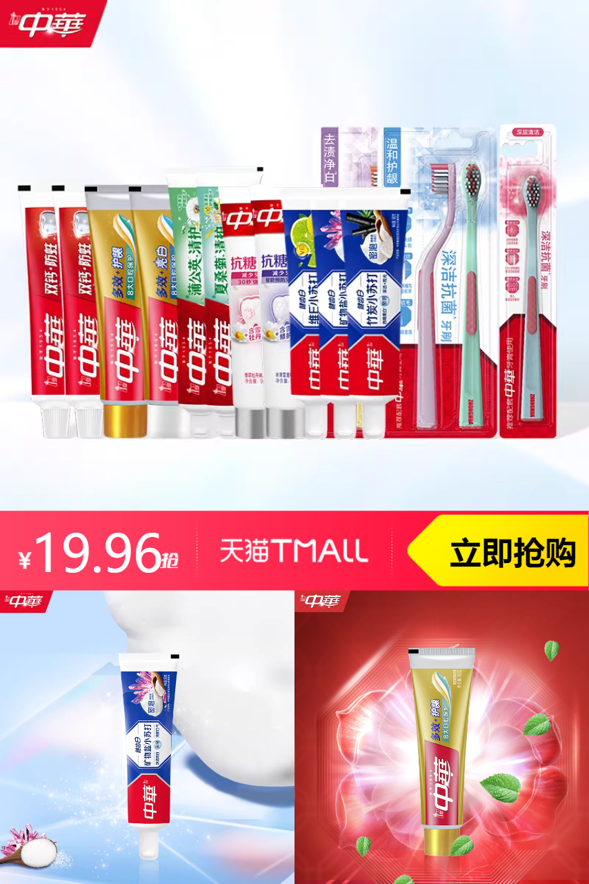 【拍4件】中华牙膏美白护龈去渍 99元减12 商品纠错