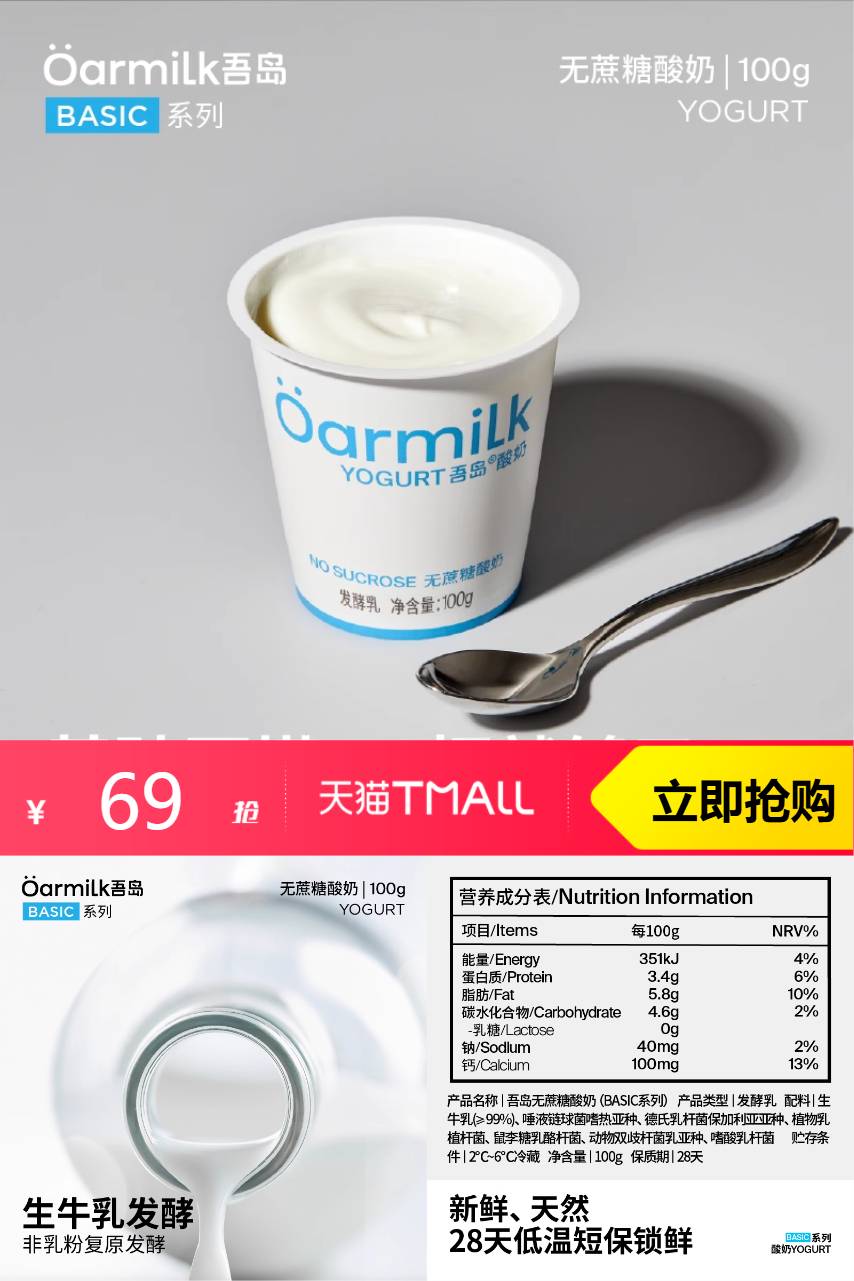 推荐:拍4送3小杯!Oarmilk吾岛酸奶任选