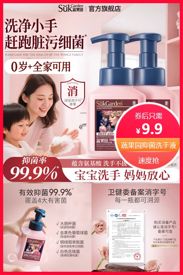 ⭕9.9元 蔬果园玫瑰抑菌泡泡洗手液