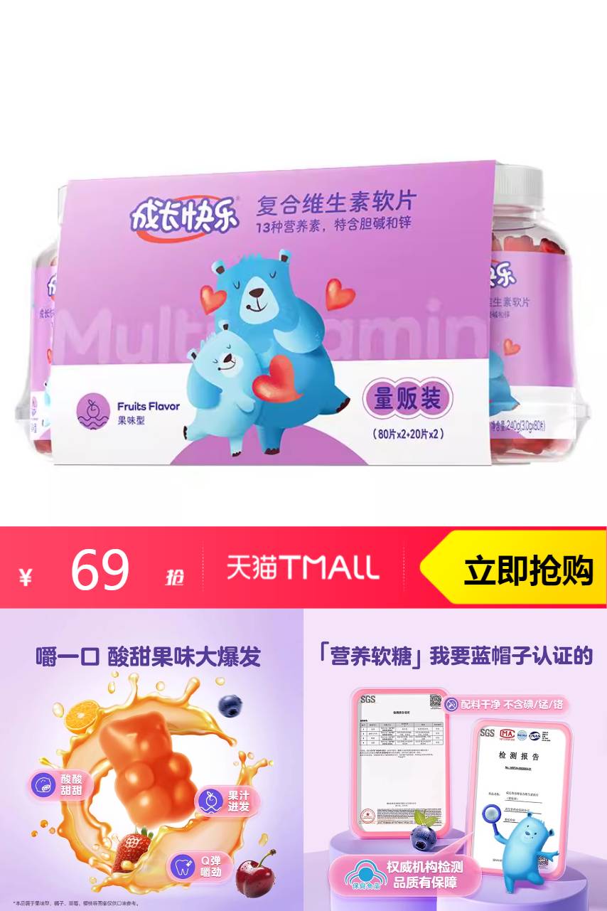 【超级立减20,88vip优惠3.45,淘金币可抵扣1.33,叠加消费券满300减30,到手价57.85,满89赠送同款20片,新客户立减7,到手50.85】养生堂儿童多种复合维生素软糖200片,它含有丰富的维生素A、C、D和多种B族维生素,能满足孩子日常营养需求。