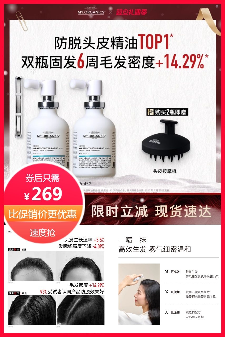 消费券+淘金币后到手约239元!这款发际线喷雾真的很赞!它含有天然有机成分,可以强韧发丝,防脱,毛囊逆生长。一喷一抹高效生发,雾气细密温和。