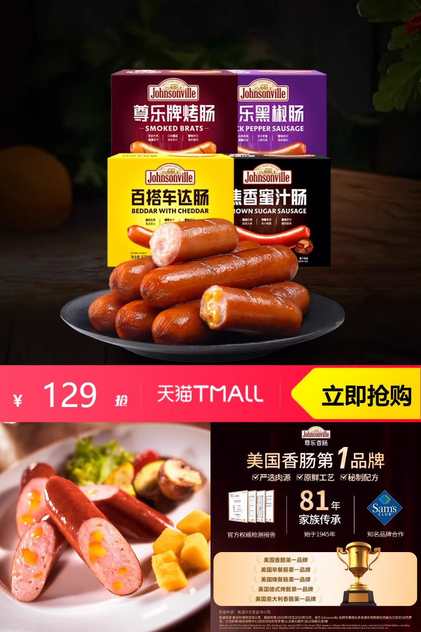 【回购推荐】尊乐香肠烤肠2盒装 205元减152 商品纠错