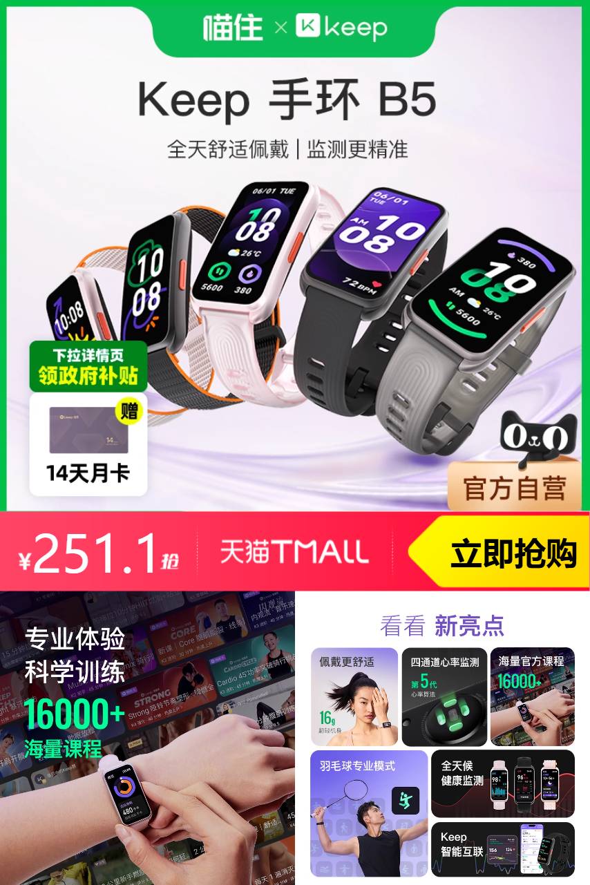 ⭕Keep智能运动手环B5全彩大屏智能手表