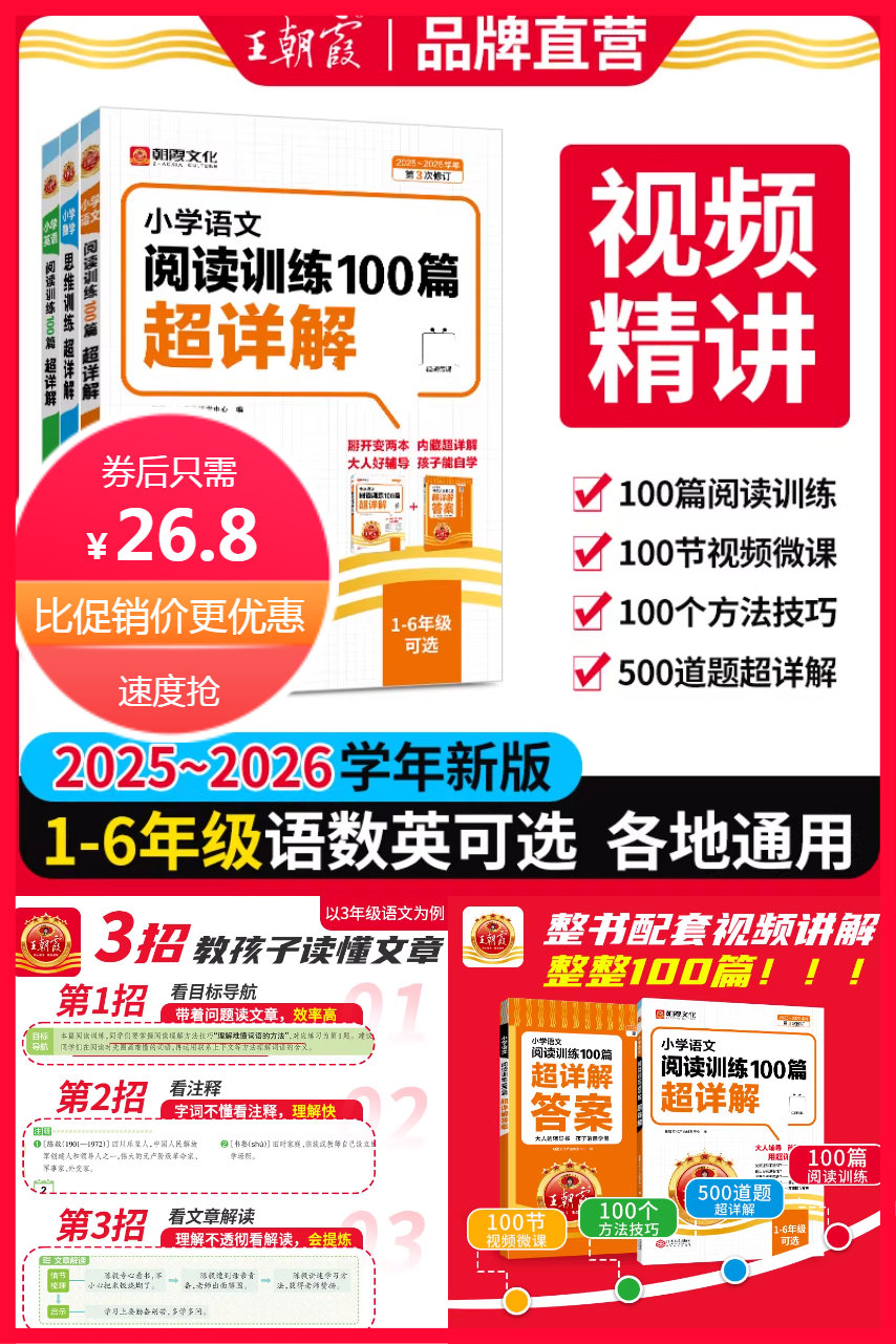 【淘金币抵扣更优惠】2025新版超详解系列,100篇阅读+100节视频+100个技巧+500题超详解,掰开变两本,内藏超详解,大人能辅导,孩子能自学!