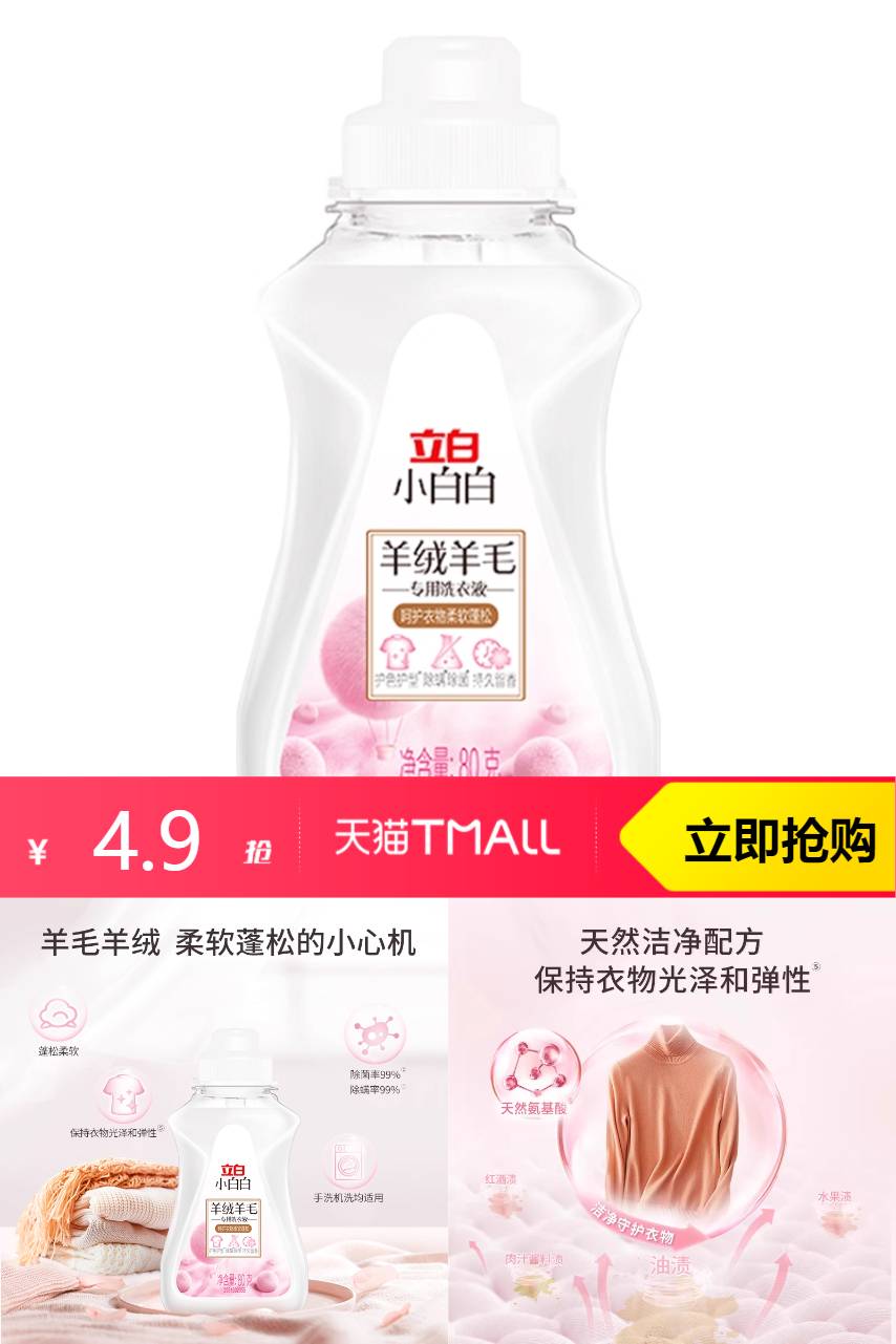 【叠加88vip淘金币到手4.35】立白小白白羊绒羊毛专用除菌除螨洗衣液,衣鞋精细洗护就用小白白,羊毛羊绒柔软蓬松的小心机~