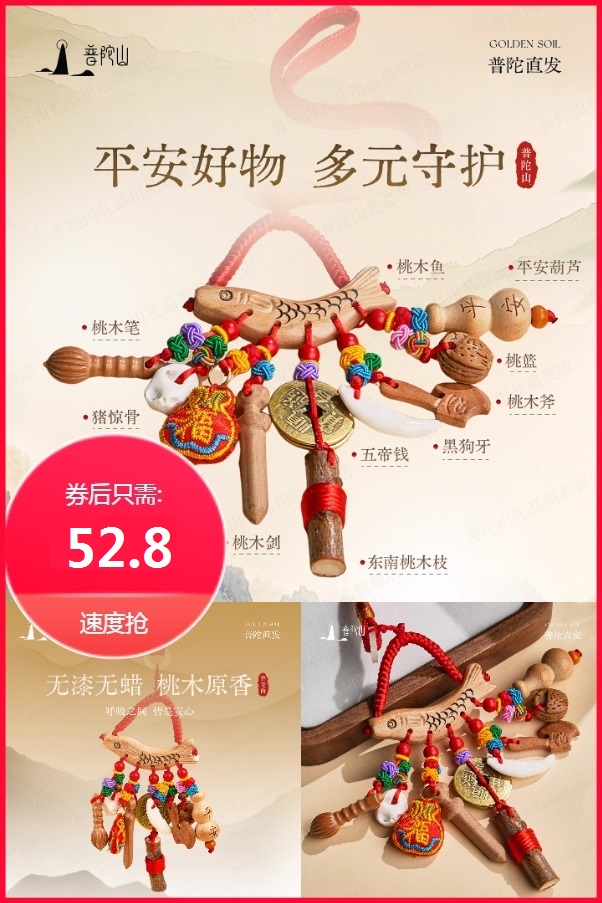 【叠加饰品天降券,88会员再9折,到手约41】【普陀山】保真桃木,平安守护!宝宝孕妇压惊挂件。无漆无蜡,桃木原香,宝宝孕妇放心用!礼盒装,自用送礼都有面子