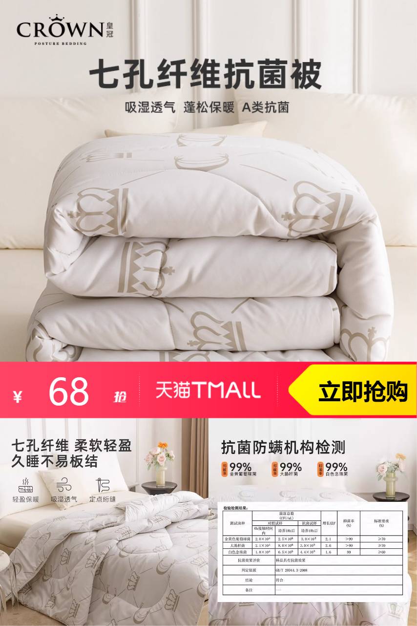皇冠 皇冠七孔纤维抗菌被芯春秋被A类约3.8斤 1元减25 商品纠错