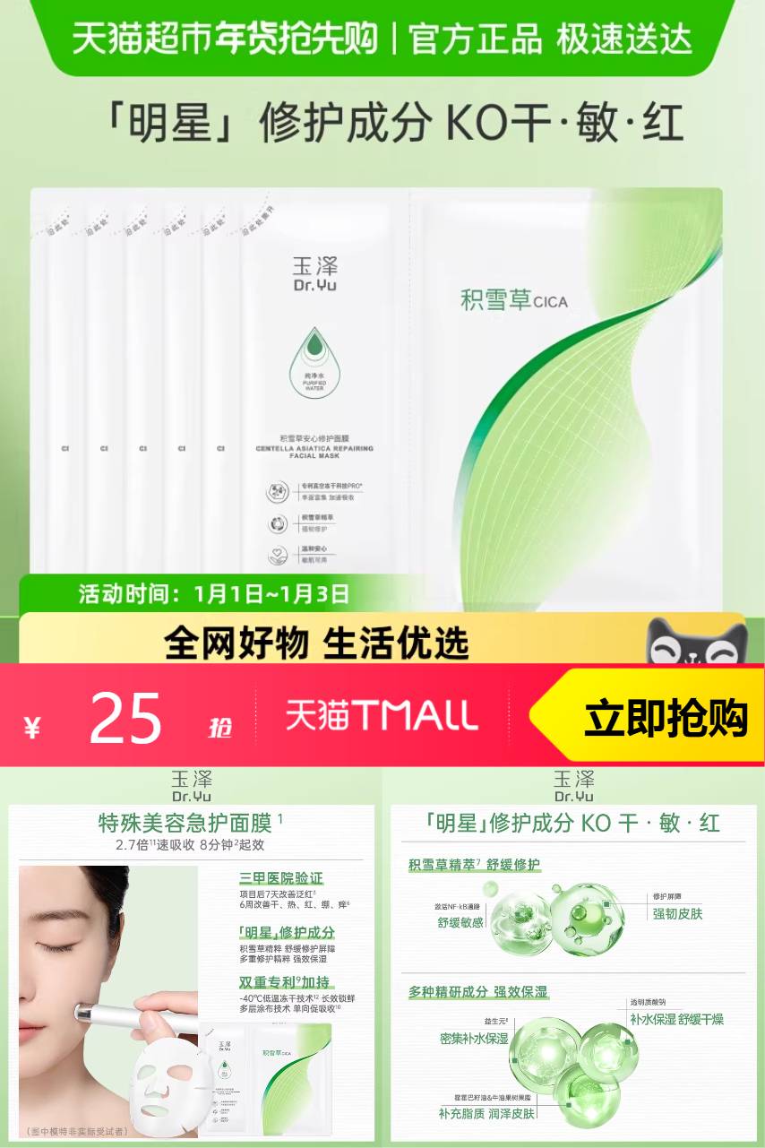 推荐:玉泽积雪草安心修护面膜6片舒缓补水保湿