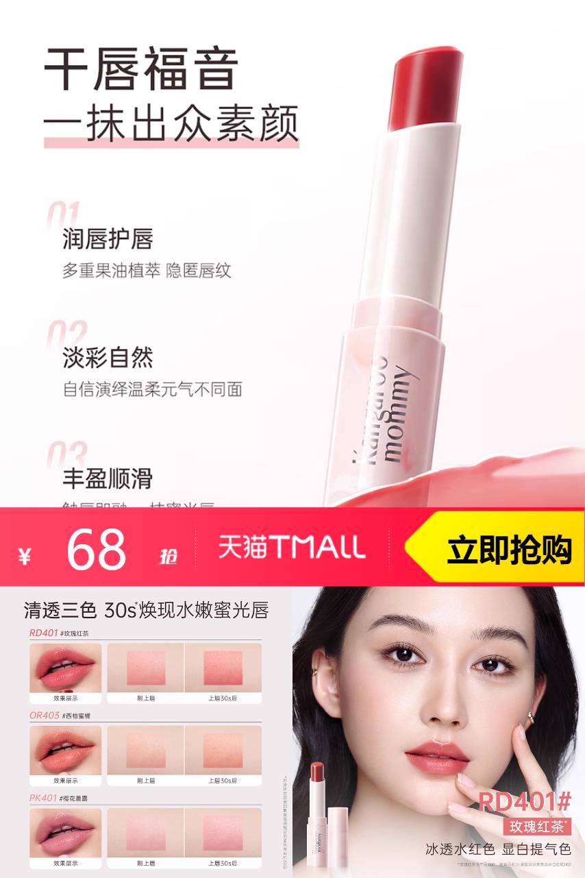 【【1】官方立减12,9折消费券,淘金币抵扣5.17,到手56.55; 【2】赠卸妆湿巾*2,拍2赠卸妆湿巾*4】官方立减12,9折消费券,淘金币抵扣5.17,到手56.55; 【2】赠卸妆湿巾*2,拍2赠卸妆湿巾*4】】 它的滋润效果更是让人惊艳,轻轻一抹,即刻感受到唇部水润饱满,有效缓解孕期唇部干燥、脱皮等问题。