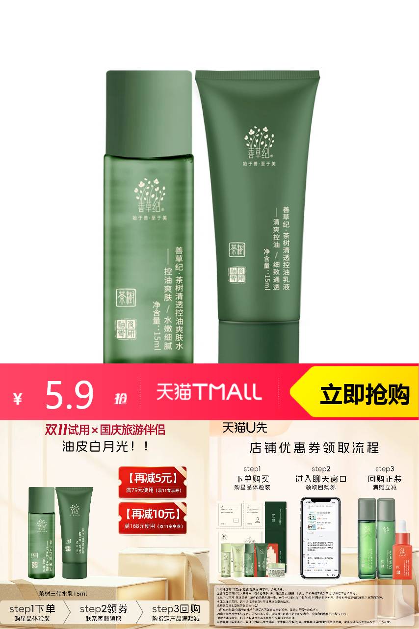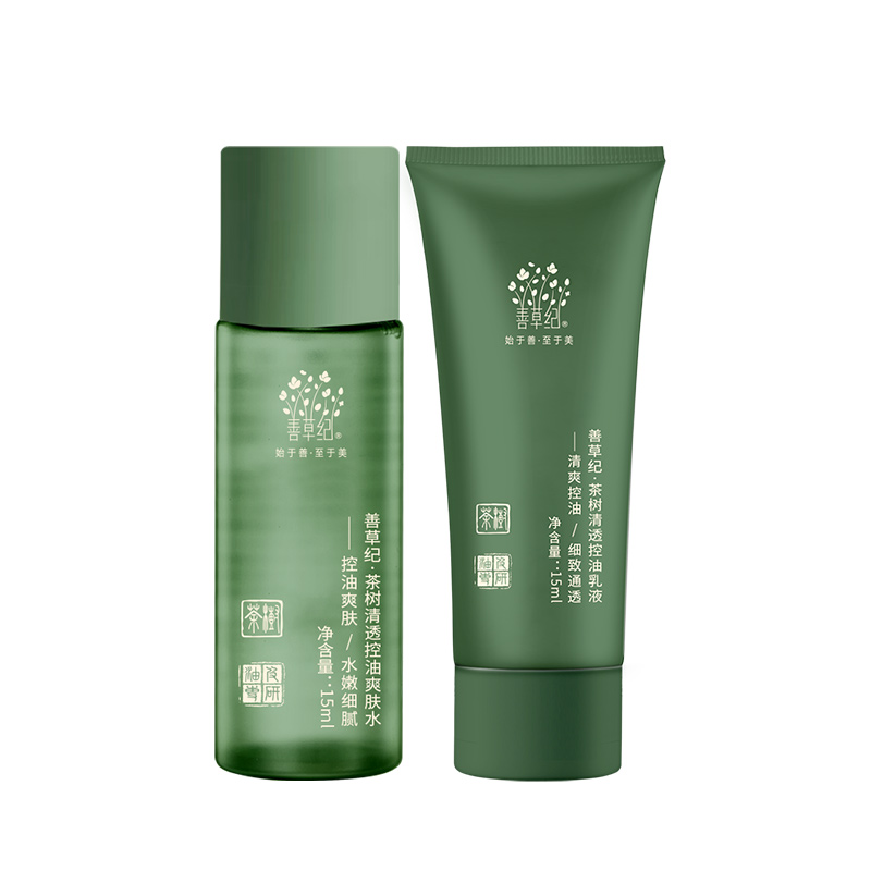 【有pz】善草纪三代茶树控油水乳套装15ml,精选茶树精华,有效平衡油脂分泌,减少肌肤的油光烦恼~