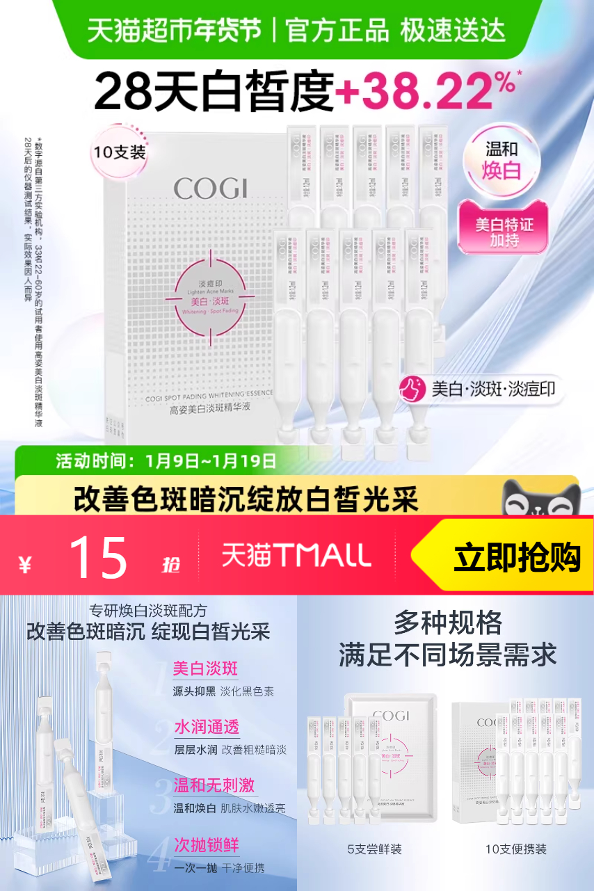 【88vip叠加淘金币+88折消费券到手11.7!】温和焕白,改善色斑暗沉绽现白皙光采,美白淡斑,源头抑黑淡化黑色素~