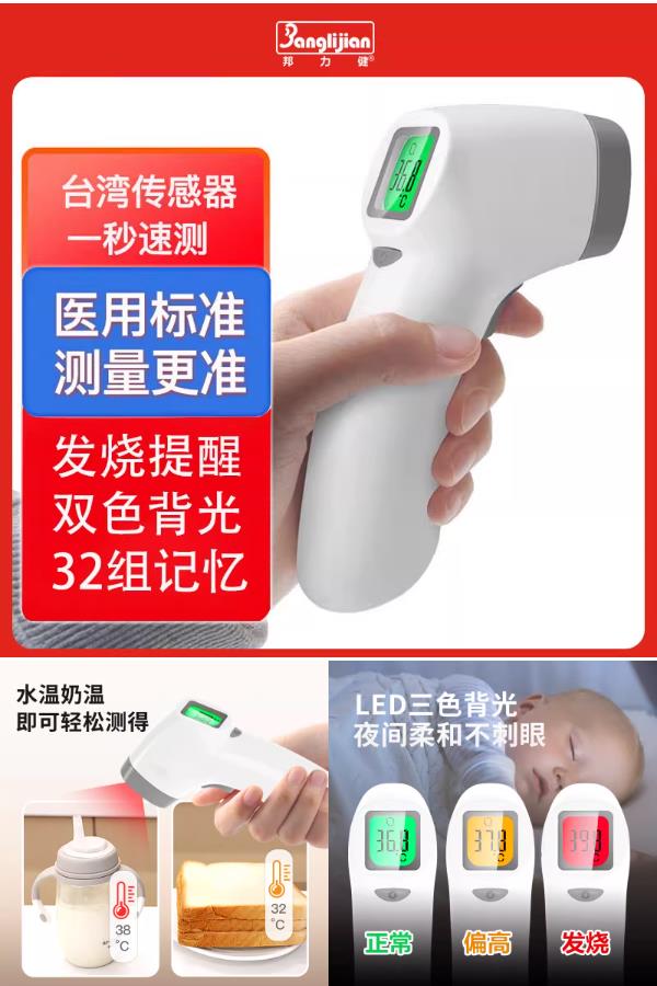 家用,婴儿,邦力健电子红外线额温枪,婴儿测温额头体温计专用高精度。家居必备品
