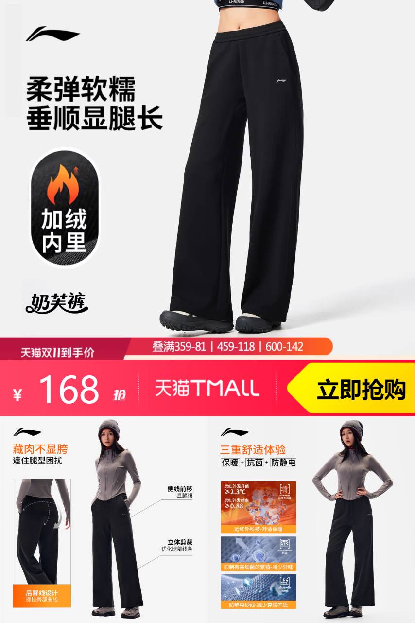 ⭕李宁奶芙裤 | 阔腿裤女直筒黑色裤子