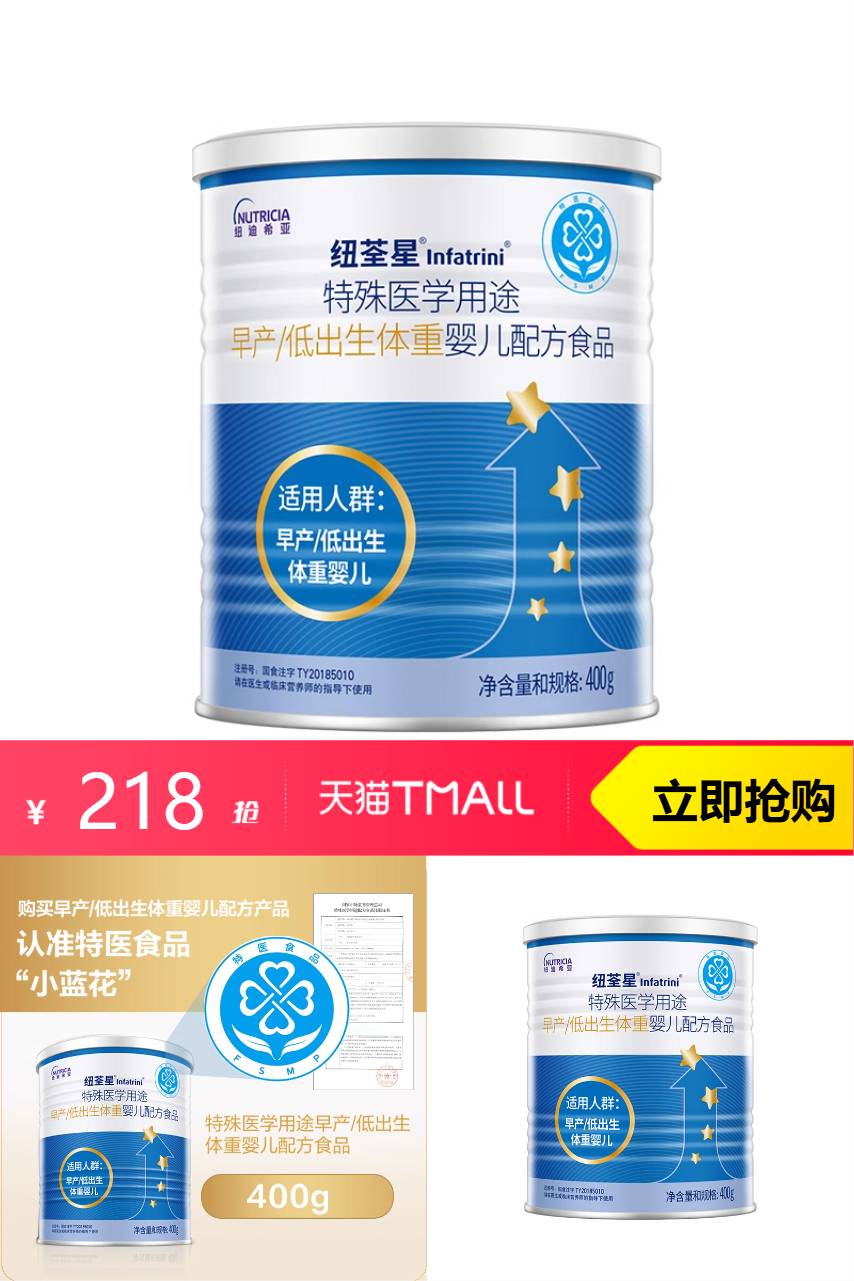 【淘金币抵扣6.98元,到手211】纽荃星 早产/低出生体重全营养粉400g,纽荃星特殊医学用途早产/低体重婴儿配方食品~