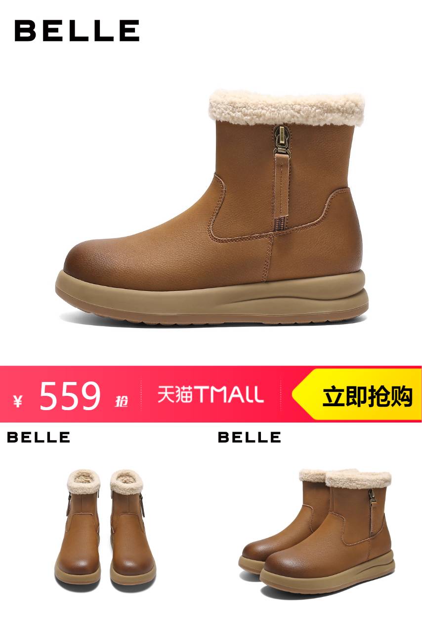 百丽 百丽厚底翻毛雪地靴女靴高帮加毛勃肯鞋 769元减210 商品纠错