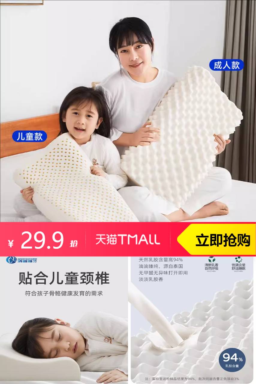 【领券到手仅需29.9 ,厂家直销的纯乳胶记忆枕,有异味直接退包运费】94%泰国天然乳胶滴滴纯粹,源自泰国,舒缓压力,呵护颈椎,提高睡眠,缓解颈部肌肉疲劳