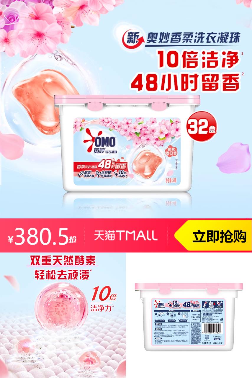 推荐:奥妙桃桃春日洗衣凝珠400G*32