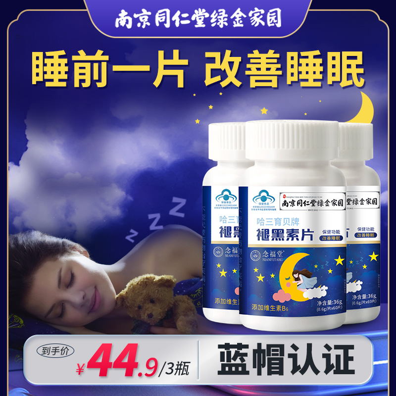 推荐:1瓶】南京同仁堂绿金家园褪黑素维生b6片改善睡眠成人官方改善B