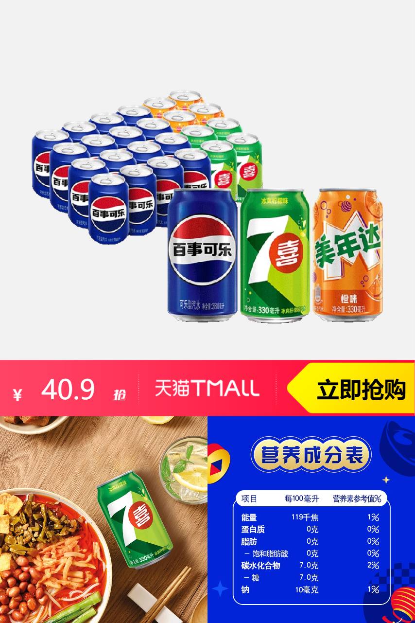 【淘金币2.09,猫超价到礼金3.21,到手35.6】百事可乐碳酸饮料混合口味330ml*24,冰块撞击,奏响加倍劲爽~