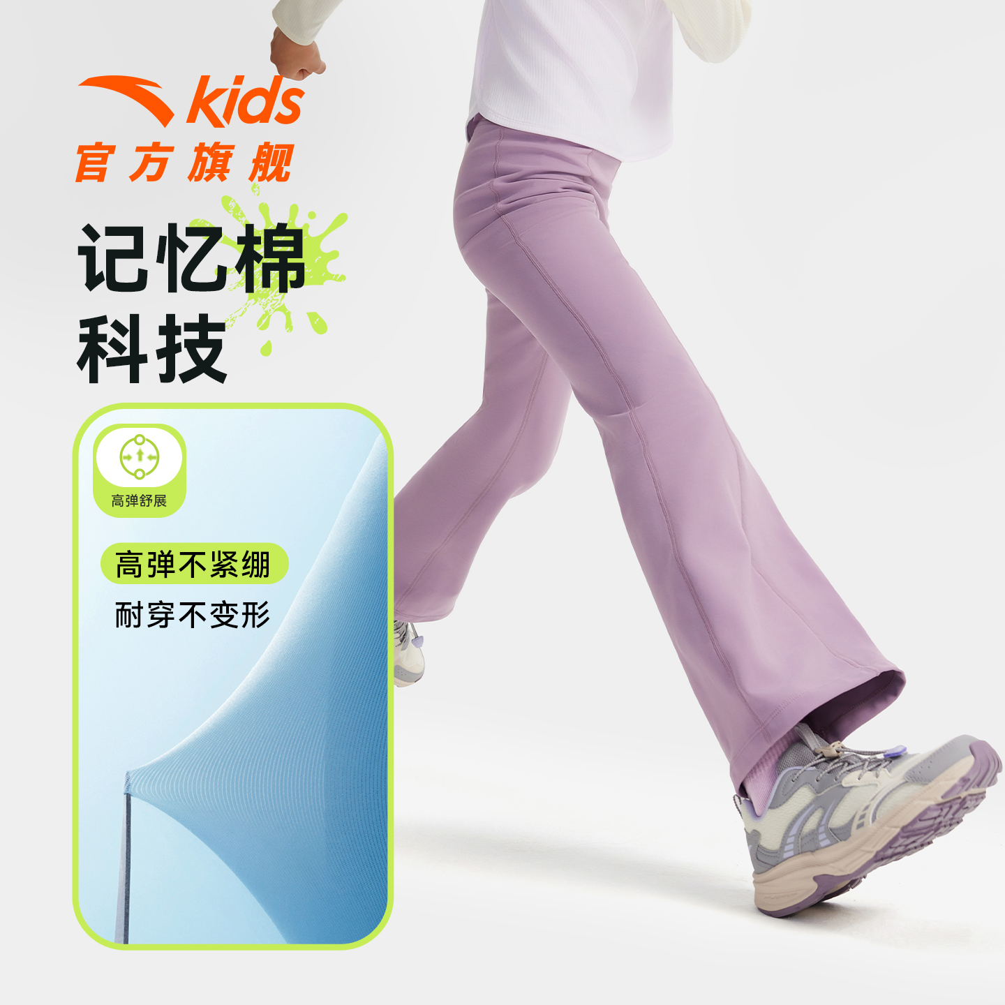 安踏儿童装女童加绒裤子阔腿裤春秋款2025秋季新款运动长裤喇叭裤。
