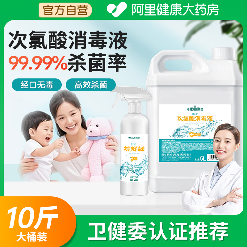 海氏海诺次氯酸消毒液,温和不刺激,有效消毒杀菌,适合家庭使用。大桶装方便携带,一次满足多个需求。