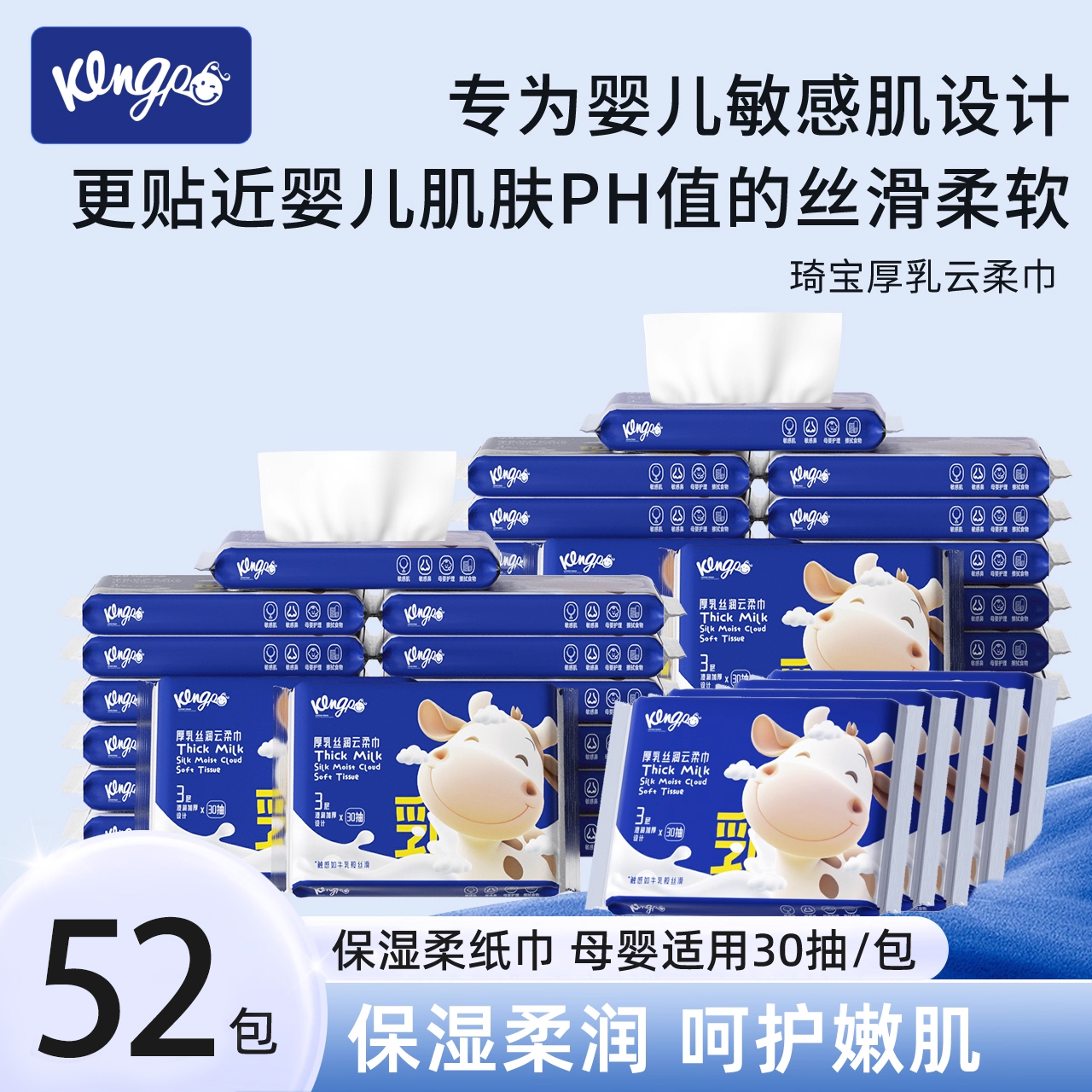 琦宝柔呵护擦鼻涕纸可擦手家用婴儿专用面巾纸云柔巾乳霜纸便携装