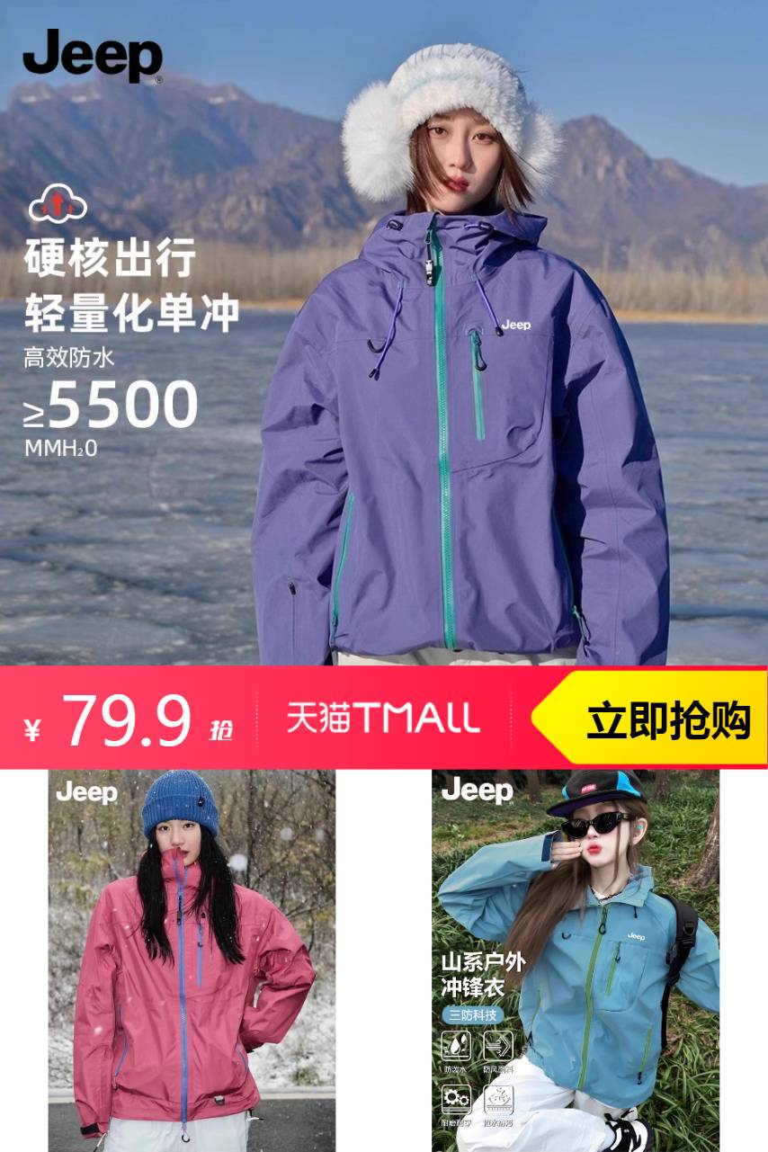 jeep多巴胺冲锋衣!全新升级黑科技面料,加厚防风防水,到手价低,男女款都有。超级好看,多种颜色可选,抓紧入手吧!赠冲锋衣修复喷雾