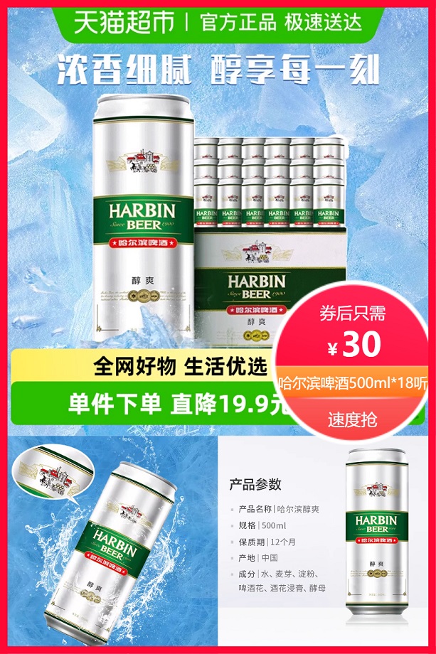 立减19.9元+券10元+88vip省1.5元+点击右上三个点进入淘金币省1.5元后约27元,哈啤醇正如一!烧烤、撸串、聚会必备之选!!!!500ml容量的!!比330ml的价格还便宜啊