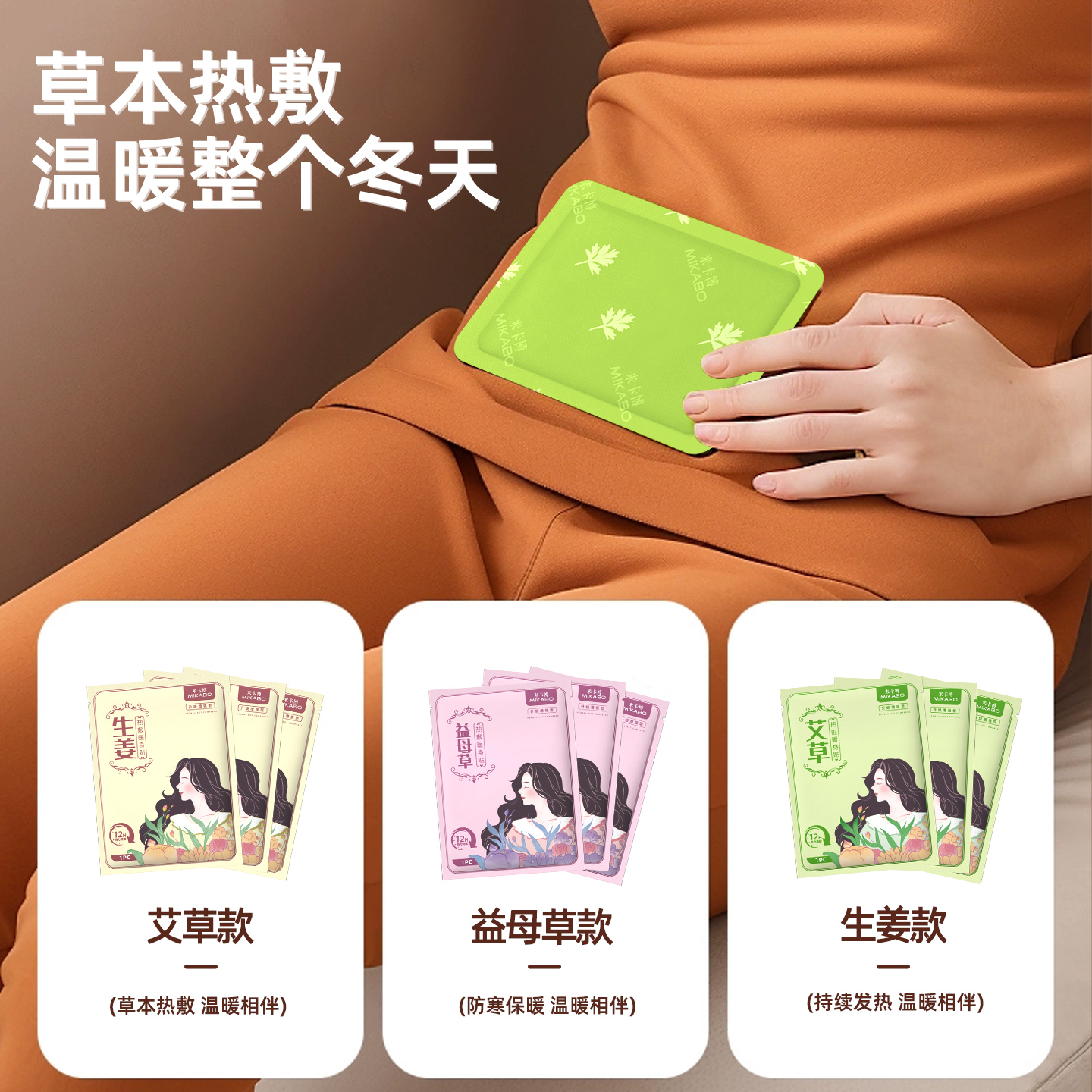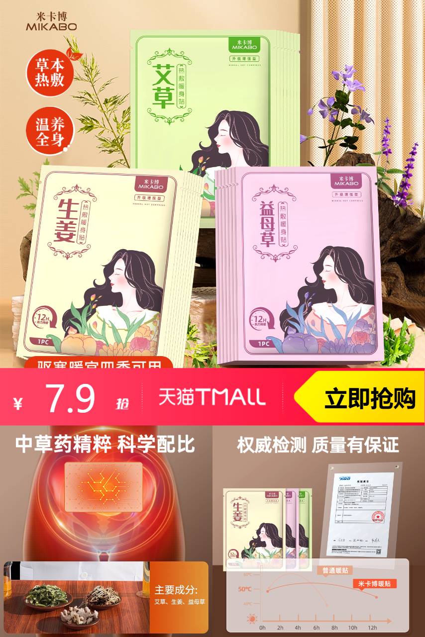 ⭕米卡博暖宝生姜艾草益母草自发暖贴30片
