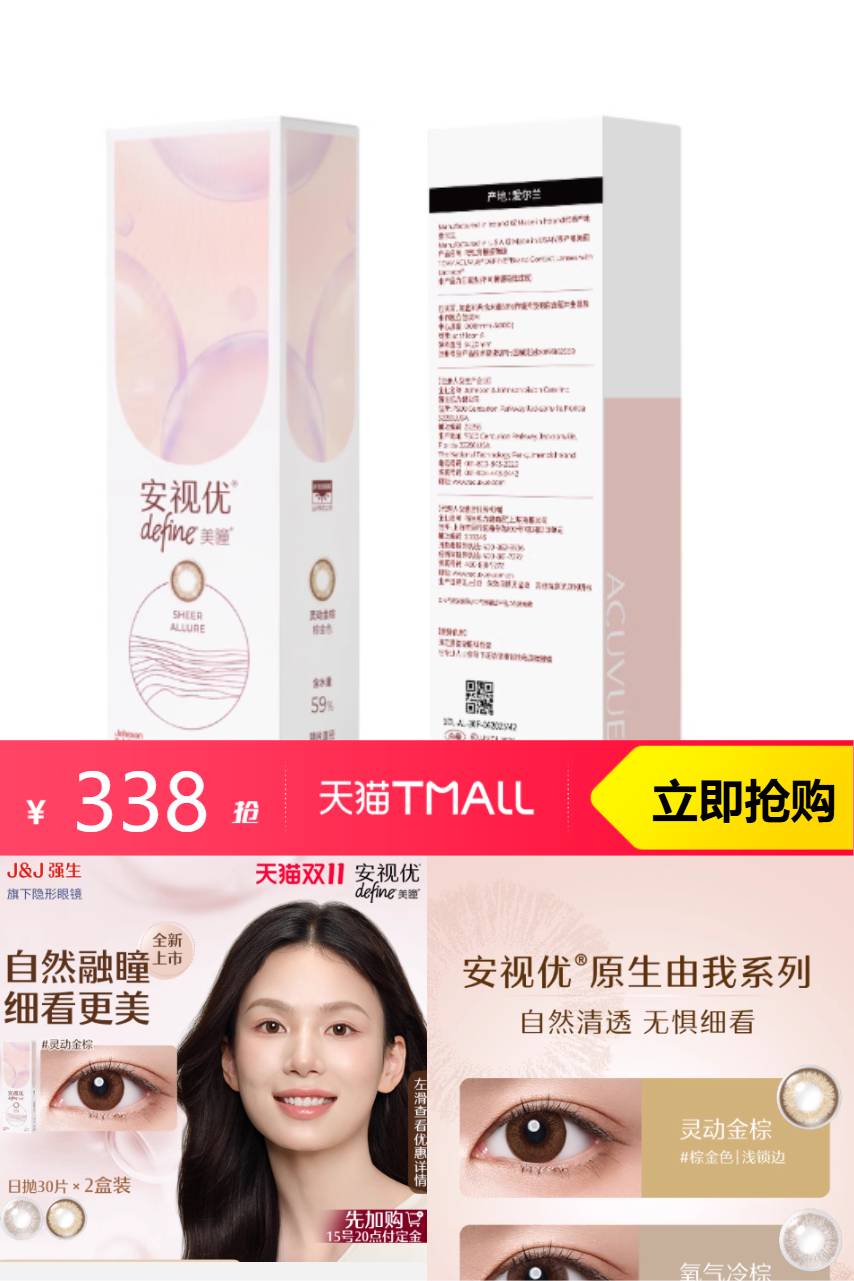 安视优 强生安视优新品美瞳隐形眼镜日抛30片*2 616元减93 商品纠错
