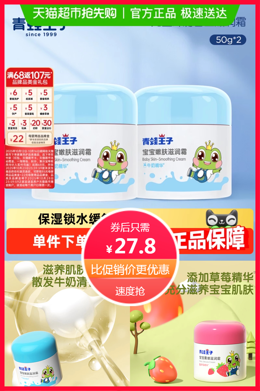 【拍2件,到手4瓶,平均一瓶不到7元,88vip更划算,速抢】青蛙王子儿童嫩肤霜来啦!专为宝宝娇嫩肌研发,保湿补水+多效滋润,温和配方妈妈更安心~大牌品质亲民价,秋冬换季不干燥,宝宝肌肤水润润!