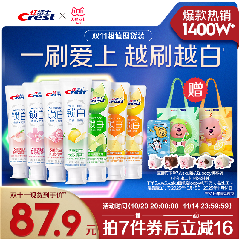 佳洁士锁白牙膏家庭装去渍去黄长效清新官方正品