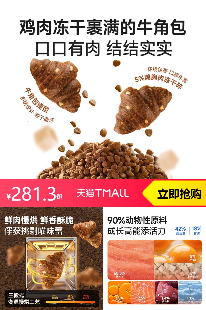 【原价334.5-立减53.2-88券28=253.3到手,蓝带试吃*1+厚乳主食罐*1厚乳主食猫条*5+厚乳主食冻干*2生生冻干粒*2】烘烤温度适宜,保持了食物的口感和营养。吃起来更自然、更有味儿!